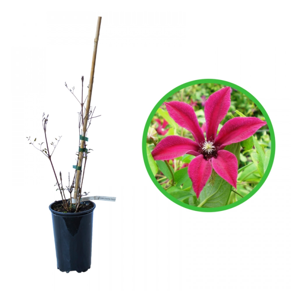Prin florile sale unice, in forma de lalea si culoarea intensa, Clematis ‘Gravetye Beauty’ este o alegere excelenta pentru gradini romantice si combinatii decorative spectaculoase.