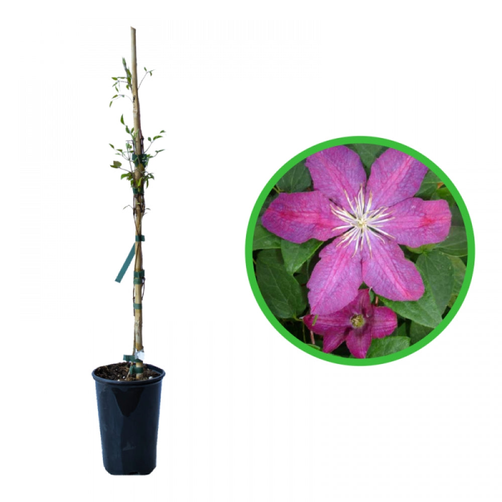 Clematita Syrena (Clematis ‘Syrena’) este o varietate poloneza deosebita, extrem de apreciata pentru florile sale mari, de 12–15 cm diametru, in nuante intense de rosu-purpuriu catifelat, care isi pastreaza culoarea vibranta pe tot parcursul infloririi. Aspectul elegant si contrastul puternic cu frunzisul verde-inchis fac din aceasta clematita un punct focal de mare impact in gradina.