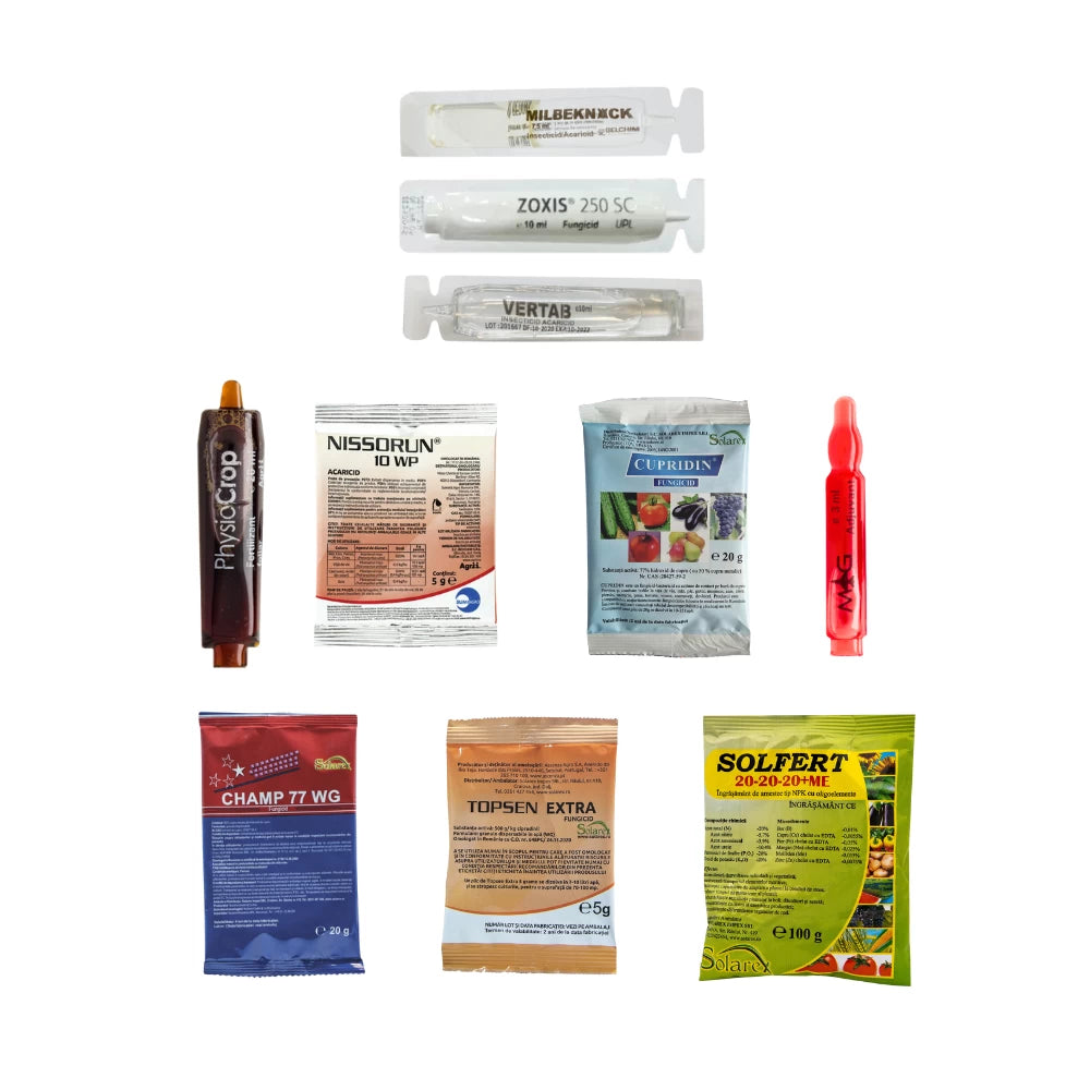 Pachetul de ingrijire si preventie pentru conifere contine elementele necesare de tratament pentru 100 m2-300 m2/10 L apa. Pachetul contine fungicide, fungicide-bactericide, insecticide, acaricide, adjuvanti, biostimulatori si ingrasamant pentru toate fenofazele plantei si acopera toata perioada anului.