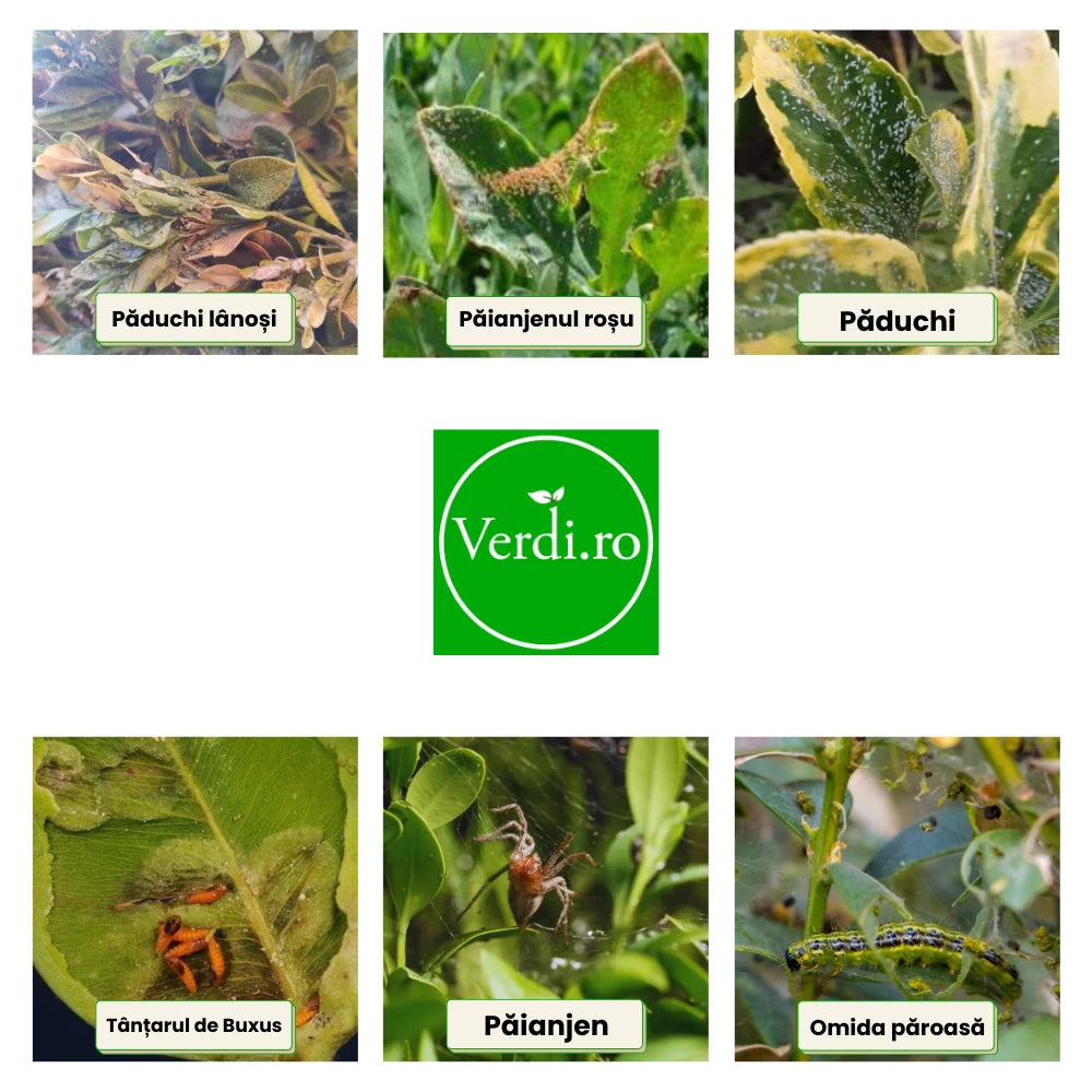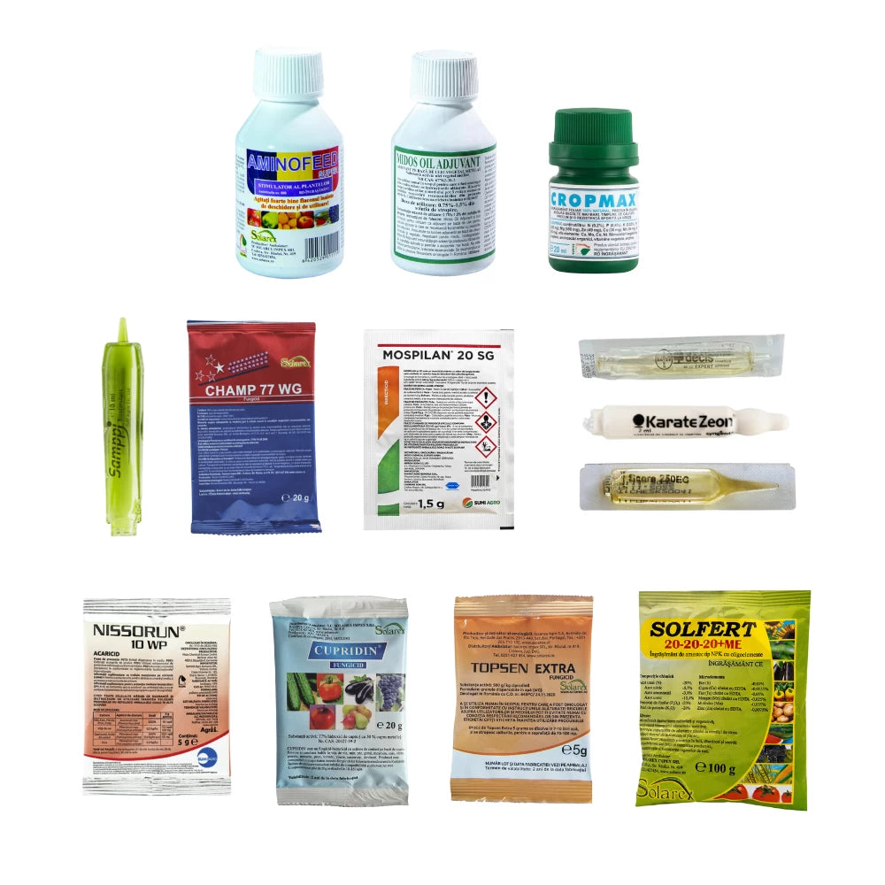 Pachetul de ingrijire si preventie pentru garduri vii contine elementele necesare de tratament pentru 100 m2-300 m2/10 L apa. Pachetul contine fungicide, fungicide-bactericide, insecticide, acaricide, adjuvanti, biostimulatori si ingrasamant pentru toate fenofazele plantei si acopera toata perioada anului.