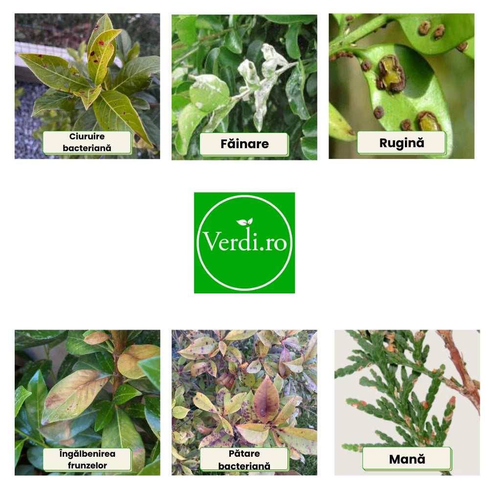 Principalele boli si daunatori combatuti sunt: Rugina, Fainare, Putregai, Afide, Acarieni, Paienjeni, Omizi, Mană, Paduchi, Patare Bacteriana, Brunificare aciculara.