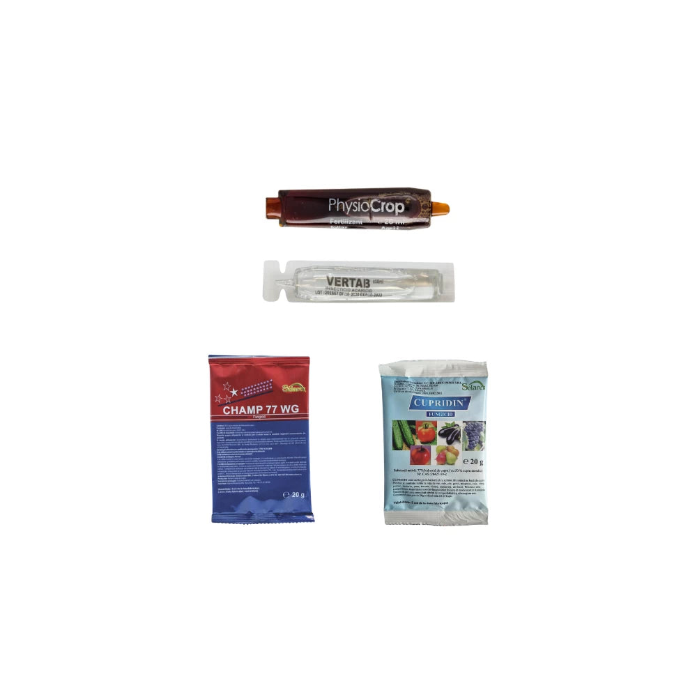 Pachetul de ingrijire si preventie pentru conifere contine elementele necesare de tratament pentru 100 m2-300 m2/10 L apa. Pachetul contine fungicide, fungicide-bactericide, insecticide, acaricide, adjuvanti, biostimulatori si ingrasamant pentru toate fenofazele de toamna-iarna a plantei si acopera toata aceasta perioada.