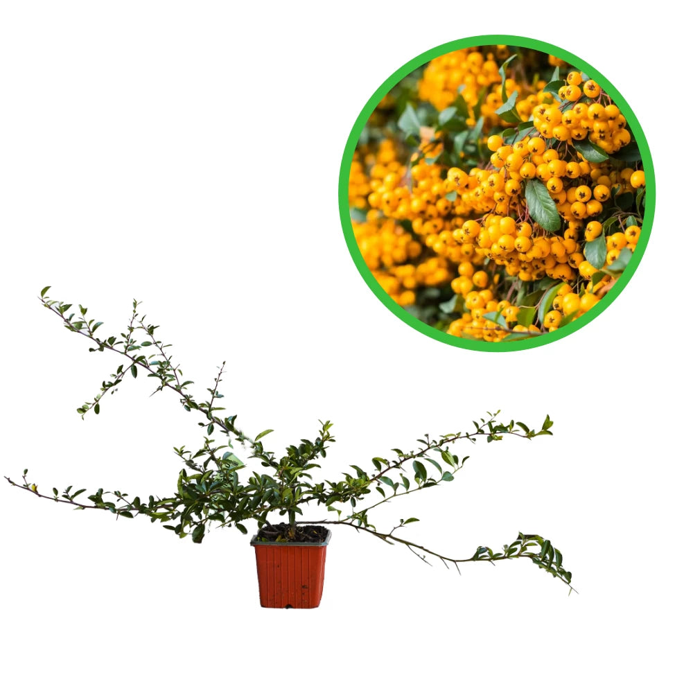 Piracanta cu Fructe Galbene (Pyracantha coccinea ‘Soleil d’Or’) este un arbust ornamental vesnic verde, foarte apreciat pentru frunzisul sau compact, florile albe parfumate din primavara si fructele galbene intense care decoreaza gradina din toamna pana iarna. Este cunoscuta atat pentru valoarea sa estetica, cat si pentru rolul defensiv, datorita spinilor puternici care formeaza o bariera naturala de protectie.