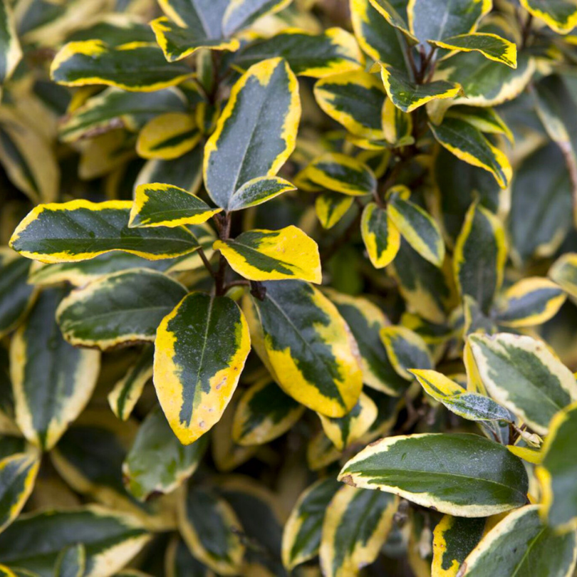 - Arbust vesnic verde, cu frunzis decorativ verde-inchis si nuante argintii, pestrite cu galben-auriu